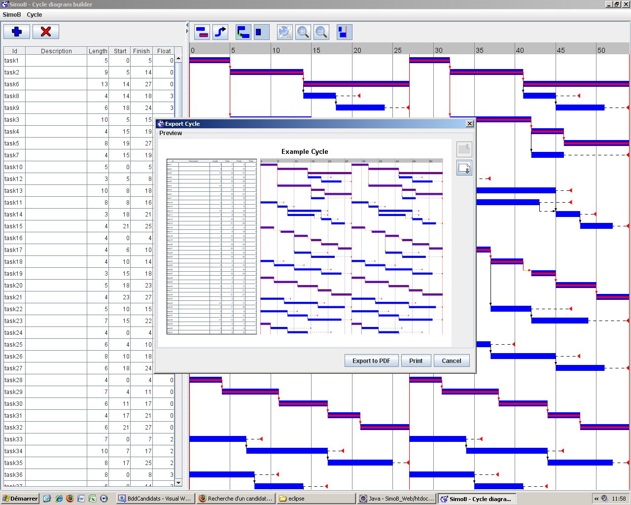 It features (among others):- a graphical Gantt editor